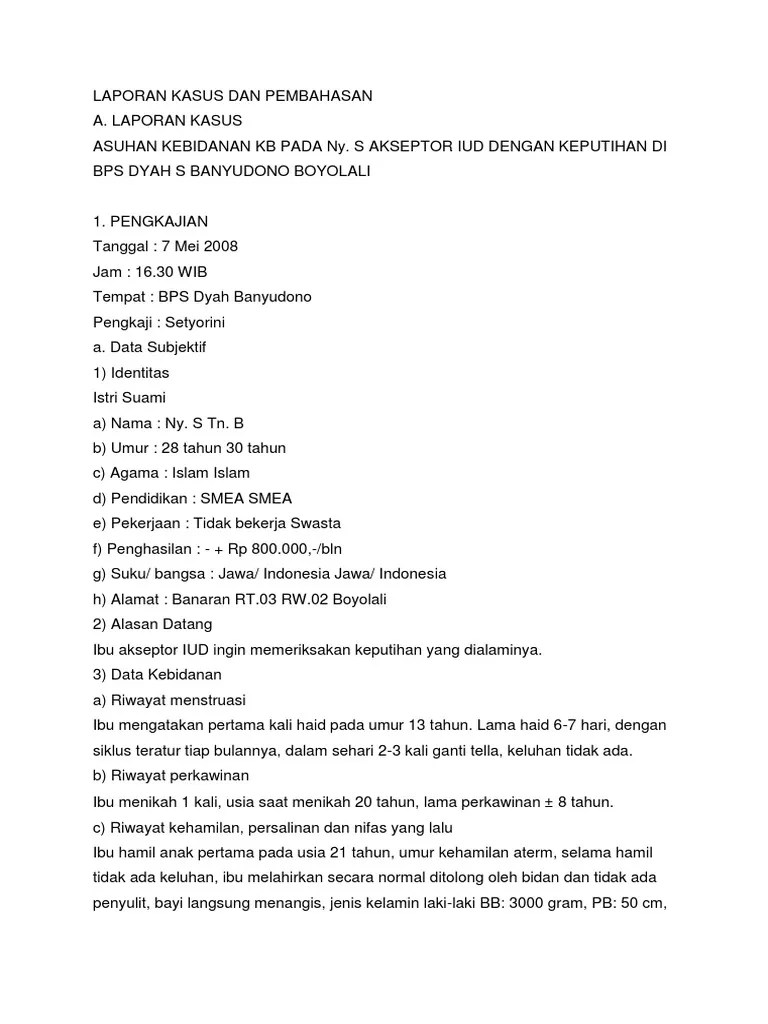 Studi kasus ini adalah melakukan asuhan kebidanan pada aseptor kb suntik 3. Praktikum asuhan kebidanan keluarga berencana dan kesehatan reproduksi ini,. Asuhan kebidanan pada ny s usia 30 tahun p 1001 ab000. Di bps ny.siti nurcahyaningsih purwodadi malang 1) oral kontrasepsi a) pil oral kombinasi pil kb yang mengandung hormone estrogen dan progesteron yang diproduksi secara alami oleh wanita .